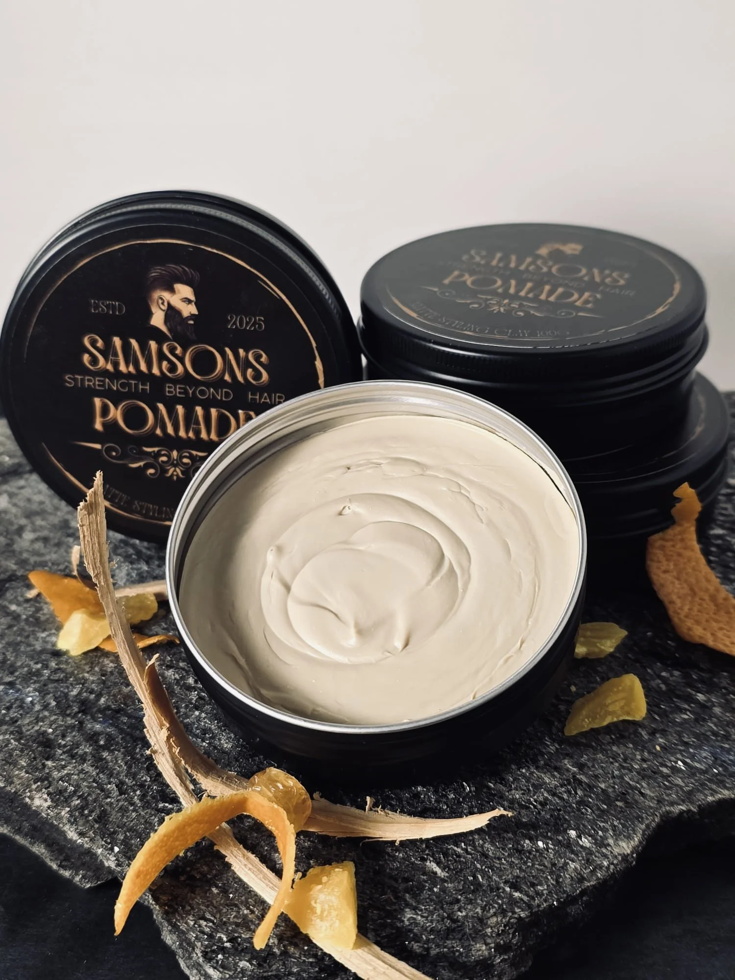 SAMSONS POMADE was created from a desire for a hairstyling product that actively promotes hair and scalp health.