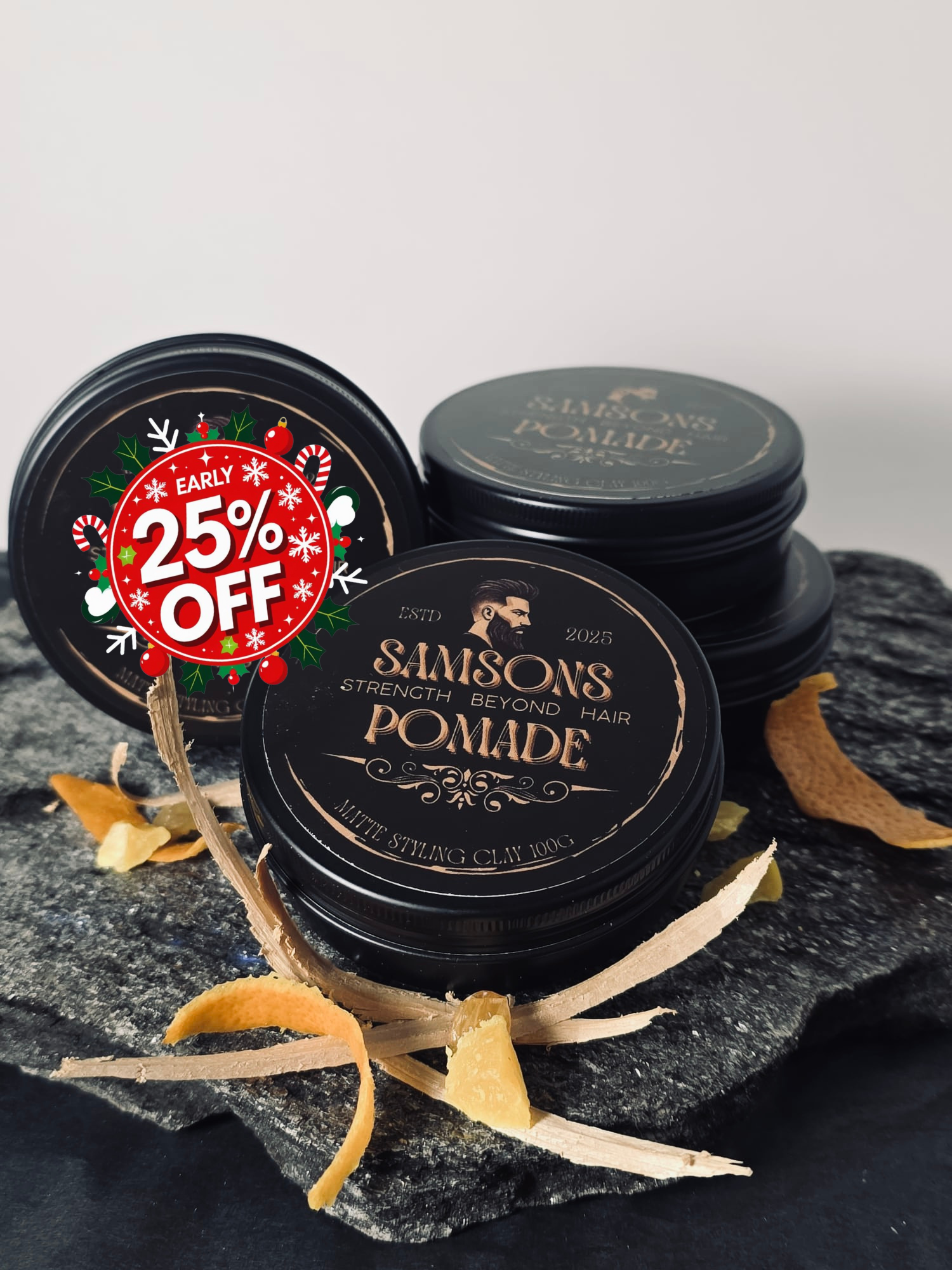 Discover SAMSONS POMADE All-Natural Matte Clay, the revolutionary solution for the modern individual who demands both impeccable style and pure hair wellness. Crafted from thoughtfully sourced natural elements, this isn't just a styling product – it's a daily ritual for stronger, healthier hair.